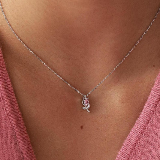 Tiny CZ Tulip Flower Pendant Necklace in Sterling Silver, Silver or Gold or Rose Gold, CZ Flower Necklace, CZ Floral Necklace