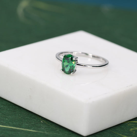 1 Carat Emerald Green CZ Oval Cut Ring in Sterling Silver, 5x7mm Green Zircon Ring, US Size 5-8, Green Oval Ring, May Birthstone