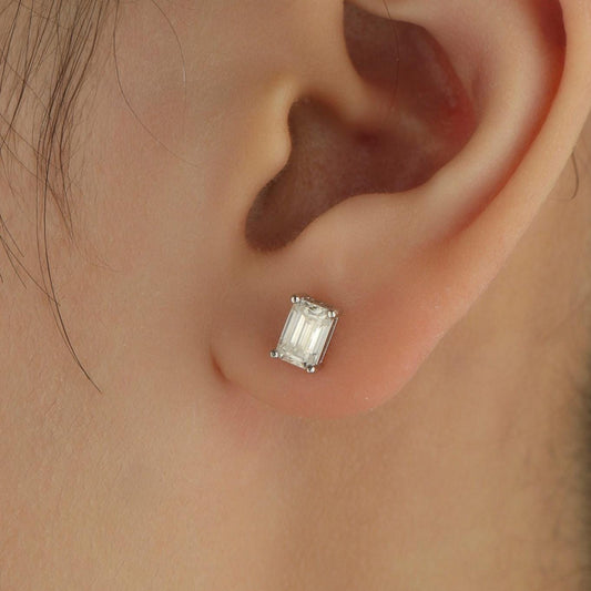 0.8Ct Emerald Cut Moissanite Diamond Stud Earrings in Sterling Silver, Emerald Cut Earrings, 4x6mm, Four Prong Set, Rectangular Moissanite