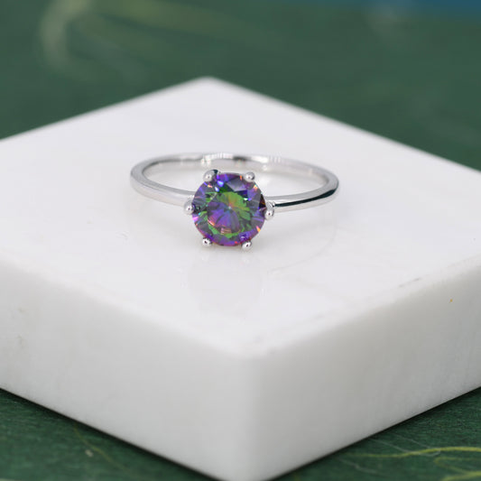 1 Carat Mystic Black CZ Ring in Sterling Silver, 6mm Mystic Topaz CZ Ring, US Size 5-8, Six Prong Ring, Colour Changing Black Crystal Ring