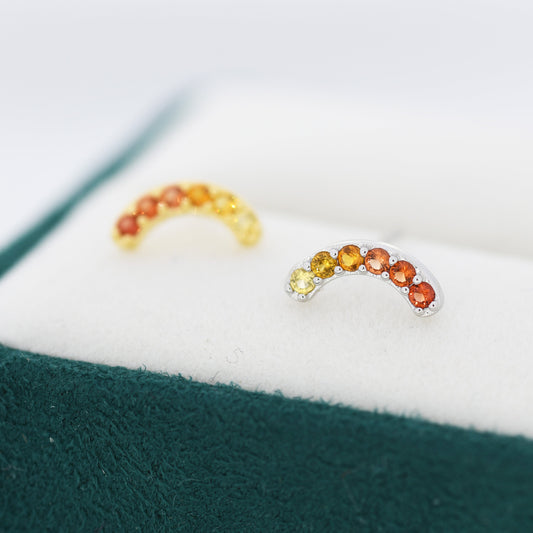 Ombre Red CZ Arch Rainbow Stud Earrings in Sterling Silver, Silver or Gold, Gradient Colour Red Pink Rainbow Earrings, Stacking Earrings