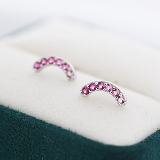 Ombre Ruby Pink CZ Arch Rainbow Stud Earrings in Sterling Silver, Gradient Colour Red Pink Rainbow Earrings, Stacking Earrings