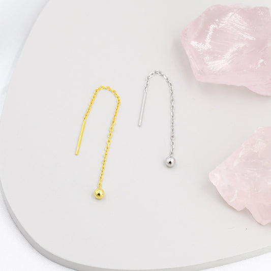 Sterling Silver Minimalist Ball Ear Threader, Various Length, Silver or Gold, Minimal Long Threader earrings, Minimalist, Threaders