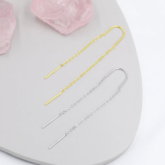 Sterling Silver U shape Threader, Silver or Gold, Minimal Long Threader earrings, Minimalist, Threaders