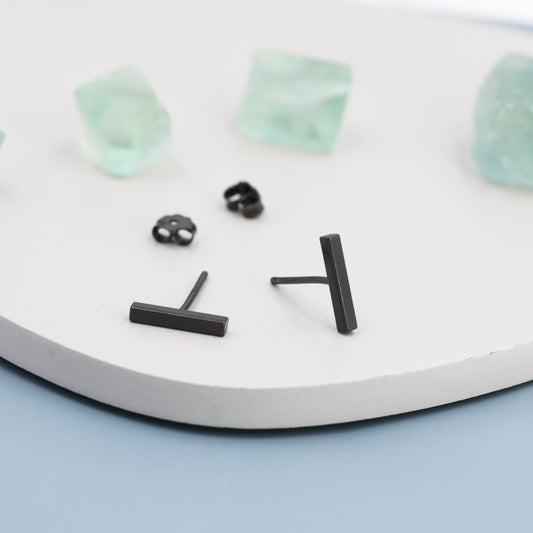 Black Bar Stud Earrings in Sterling Silver, Black Rhodium coated Sterling Silver, 10mm Bar Earrings, Minimalist Earrings