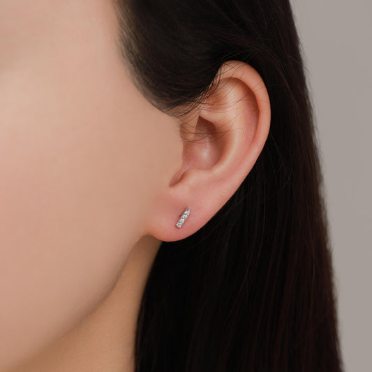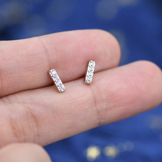 Tiny CZ Crystal Bar Stud in Sterling Silver, Tiny Bar Stud, Mini Bar Earrings, Extra Small Bar Earrings, Stacking Earrings