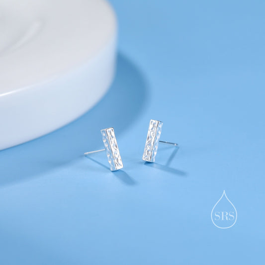 Hammered Bar Stud Earrings in Sterling Silver, Silver or Gold, Tiny Silver Bar Earrings