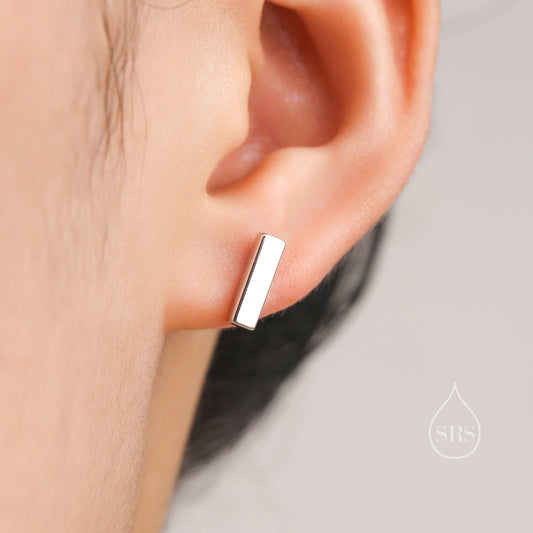 Chunky Geometric 12MM Bar Stud Earrings in Sterling Silver, Silver, Gold or Rose Gold, 10mm Bar Earrings,