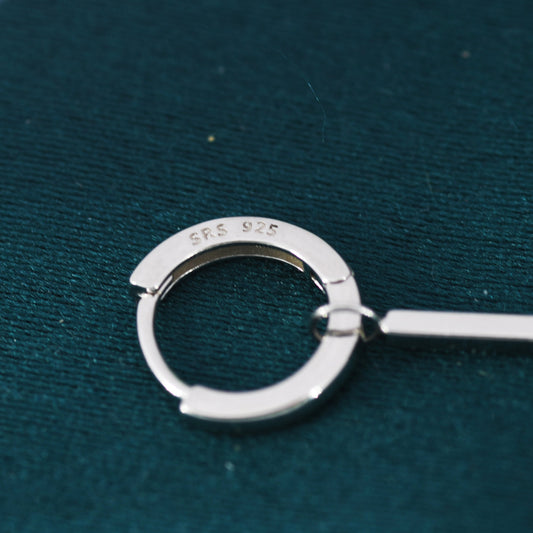 Sterling Silver Dangle Bars Huggie Hoop Earrings, 8mm Hoops with Detachable Bars, Bar Earrings, Bar Dangle Hoops, Bar Earrings