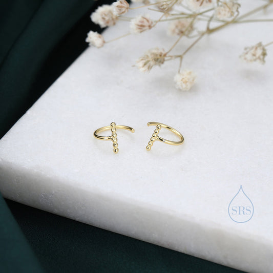 Beaded Bar Open Huggie Hoops in Sterling Silver, Pebble Bar Open Hoops, Bauble Bar Earrings, Silver or Gold or Rose Gold, Bar Earrings