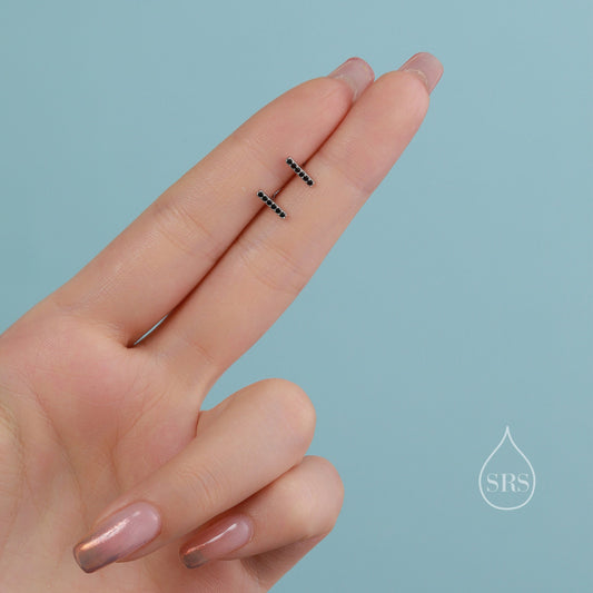 Black CZ Bar Stud Earrings in Sterling Silver, Silver or Gold or Rose Gold, Skinny Bar Stud, CZ Bar Earrings