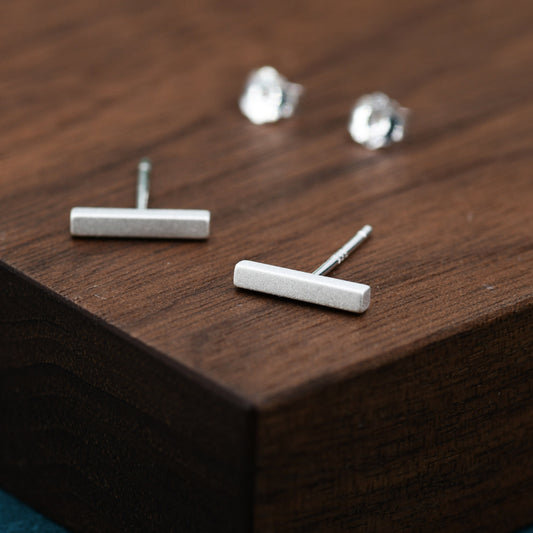 Tiny Frosted Bar Stud Earrings in Sterling Silver, Textured Bar Earrings in Sterling Silver, 10mm Bar Earrings, Minimalist Earrings