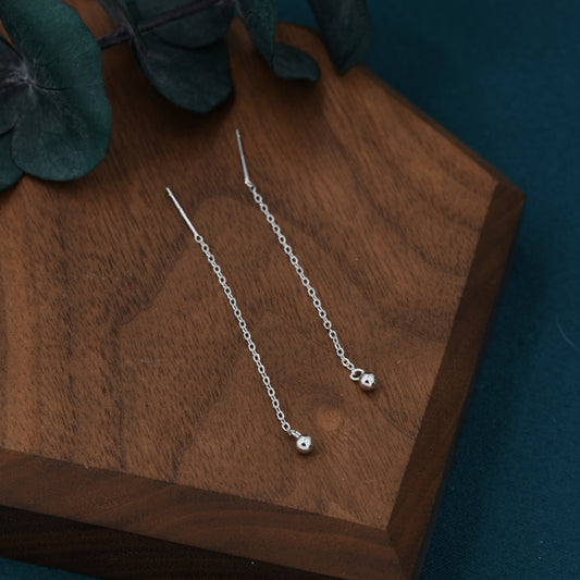 6cm Sterling Silver Minimal Ball Threader Earrings, Silver, 3mm ball, Minimal Box Chain Threader earrings