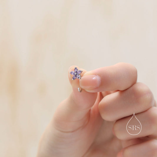 Sterling Silver CZ Flower Huggie Hoop Earrings, CZ Flower Open Huggies, CZ Open Hoops, C Hoops in Sterling Silver. Flower Earrings