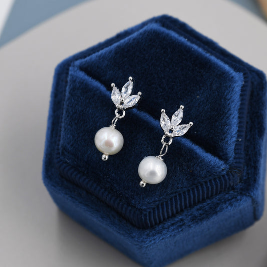Marquise CZ Pair with Baroque Pearl Dangle Earrings in Sterling Silver, Delicate Keshi Pearl Drop Earrings, Genuine Freshwater Pearls