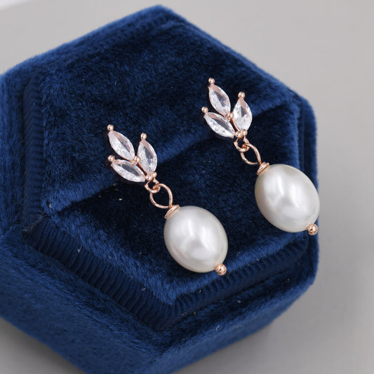 Genuine Freshwater Pearl Drop Earrings in Sterling Silver, Delicate Oval Pearl Cascade Dangle Earrings, Pearl Dangle Earring, Silver or Gold