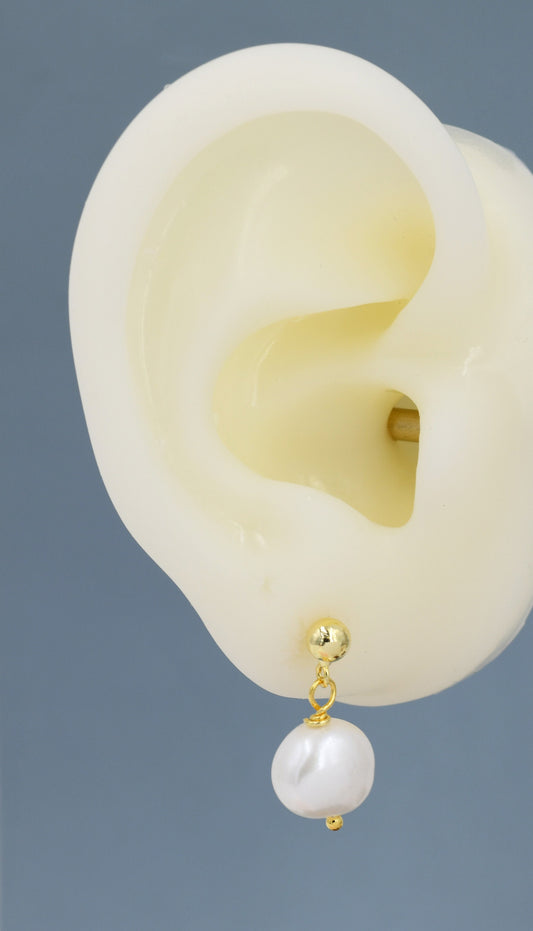Baroque Pearl Dangle Earrings in Sterling Silver, Gold over Sterling Silver, Delicate Keshi Pearl Drop Earrings, Genuine Freshwater Pearls