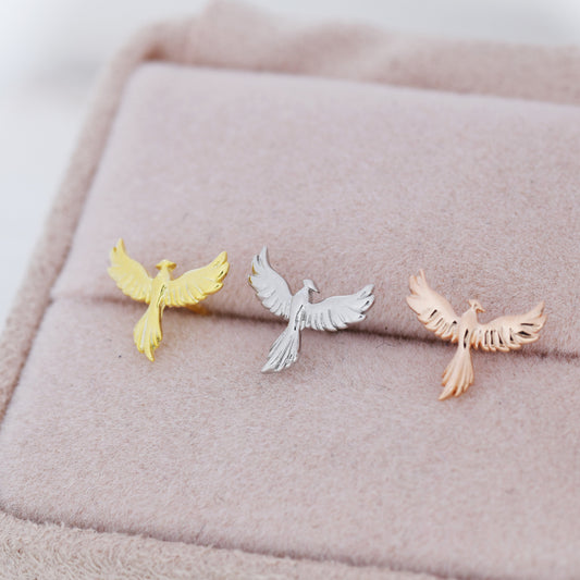 Sterling Silver Phoenix Bird Stud Earrings, Silver, Gold or Rose Gold, Dainty Phoenix Earrings