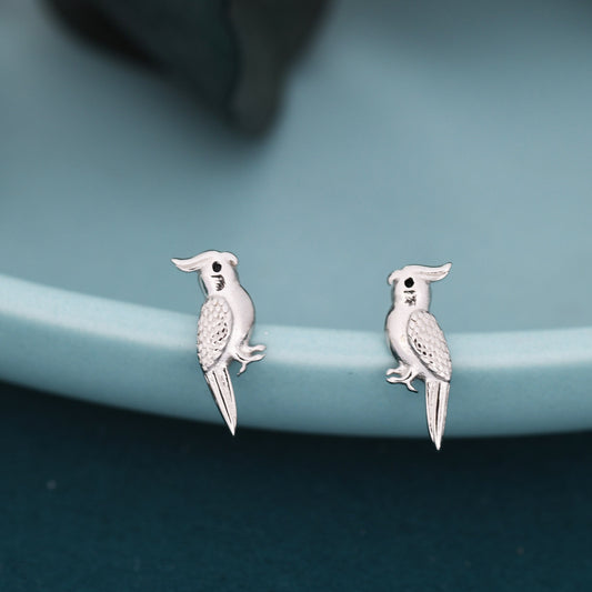 Tiny Cockatoo Parrot Stud Earrings in Sterling Silver, Silver or Gold, Parrot Earrings, Bird Earrings, Bird Stud Earrings