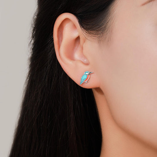 Sterling Silver Kingfisher Stud Earrings, Nature Inspired Bird Earrings,