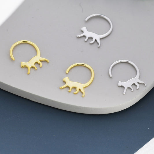 Tiny Cat Hoop Earrings in Sterling Silver, Silver or Gold, Minimalist Cat Silhouette Earrings, Simple Cat Earrings