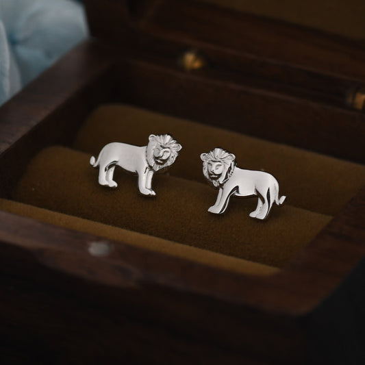Tiny Little Lion Stud Earrings in Sterling Silver - Two Tone Gold and Silver Earrings - Cute Animal Earrings - Fun, Whimsical