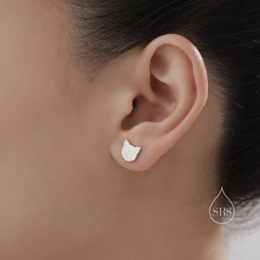 Minimalist Cat Face Stud Earrings in Sterling Silver, Silver or Gold or Rose Gold, Minimal Cat Earrings