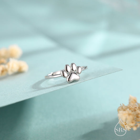 Sterling Silver Paw Print Ring, Adjustable Size Paw Print Ring, Small Pet Lover Ring, Cat Paw Ring, Dog Paw Ring