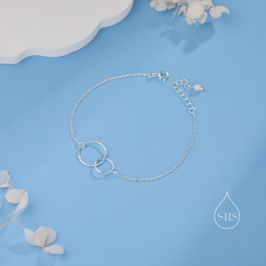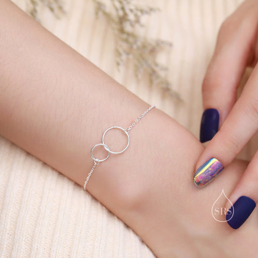 Sterling Silver Double Circle Bracelet, Silver Linked Circle Bracelet, Interlinking Circle Bracelet, Open Circle Bracelet, Sisters Bracelet