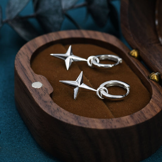 Sterling Silver Starburst North Star Hoop Earrings, Detachable Charm Hoop Earrings, Silver, Gold, Rose Gold, Interchangeable and detachable