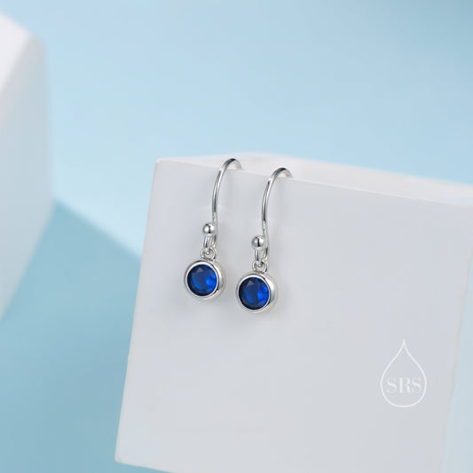Tiny Sapphire Blue CZ Drop Earrings in Sterling Silver, Cubic Zirconia Hook Earrings, Silver, Gold or Rose Gold, Minimal Earrings
