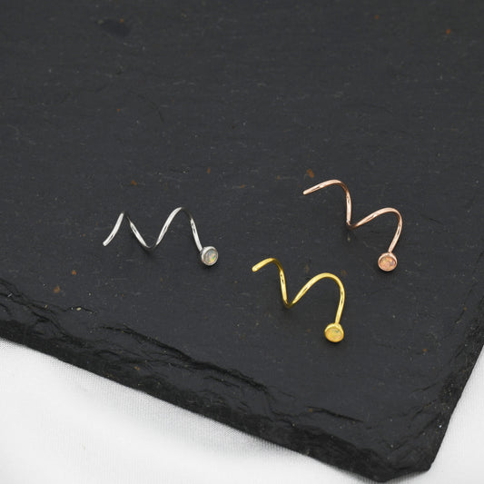 Double Spiral Opal Earring in Sterling Silver, For Double Pierced Ears, Double Piercing Earrings, Spiral Hoops with Tiny Opals
