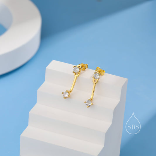 Double CZ Ear Jacket in Sterling Silver, Silver or Gold, Front and Back Earrings, Two Part Earrings