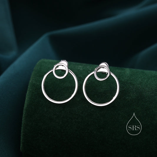 Double Circle Ear Jacket in Sterling Silver, Two Way Earrings, Detachable Circle, Front and Back Earrings, Silver Gold or Rose Gold