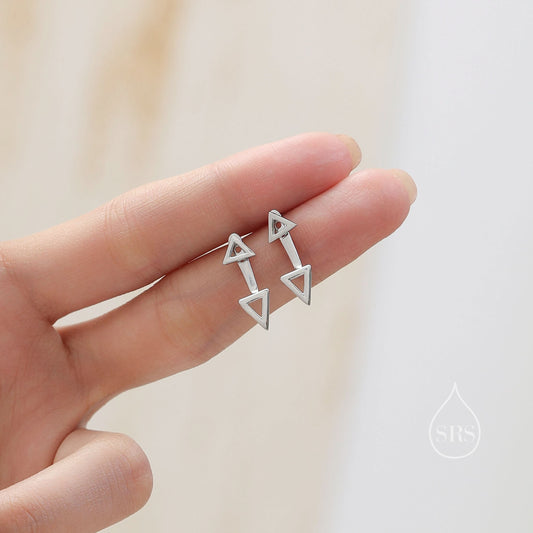 Double Triangle Ear Jacket in Sterling Silver, Silver or Gold or Rose Gold, Cut Out Triangle Jacket Earrings, Front and Back Earrings