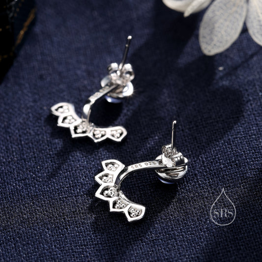Sterling Silver Front and Back Stud Earrings Ear Jackets with Sparkly Crystals, Curved Bar Crawler Jacket Earrings
