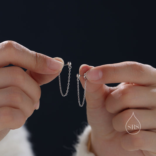 Ball Chain Earrings in Sterling Silver, Silver or Gold, Tiny Ear Jacket, Dainty Jewellery