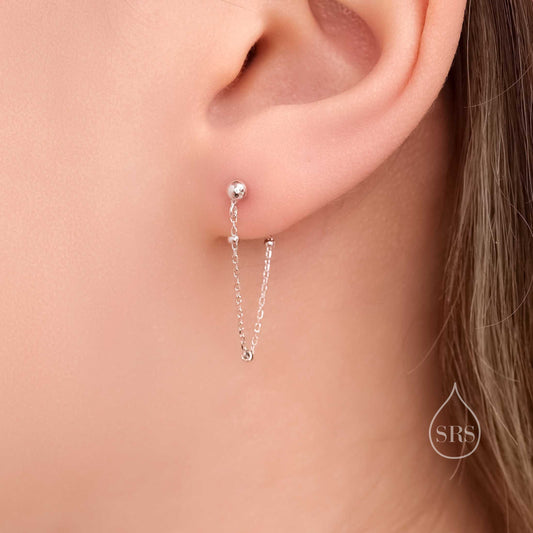 Satellite Ball Chain Stud Earrings in Sterling Silver, Silver or Gold, Tiny Ear Jacket, Dainty Jewellery