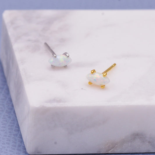 Sterling Silver Tiny White Opal Marquise Stud Earrings, Gold or Silver, Minimalist Geometric Design