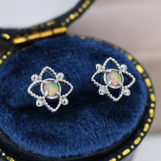 Vintage Inspired Opal Lace Stud Earrings in Sterling Silver, Silver or Gold, Opal Earrings, Vintage Style