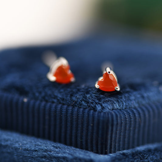 Genuine Carnelian Crystal Heart Stud Earrings in Sterling Silver, Heart Stud Earrings, Tiny Heart Earrings