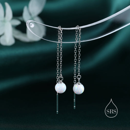 Blue Opal Dot Threader Earrings in Sterling Silver, Lab Opal Ear Threaders, Silver or Gold, Opal Threaders, Chain Earrings
