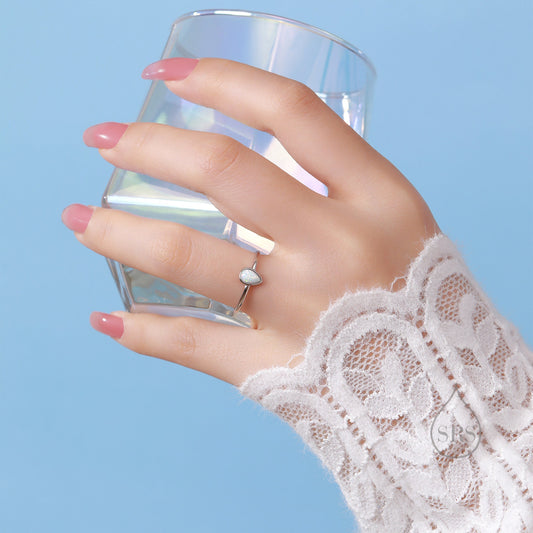 Fire Opal Droplet Ring in Sterling Silver, US 5 - 8, 4x6mm, Lab Opal Stone Ring, White Opal Ring
