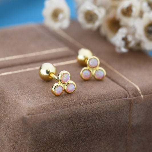 Cosmic Dust Pink Opal Trio Screw back Earrings in Sterling Silver, Silver or Gold, Opal Trinity Earrings, Screwback Barbell