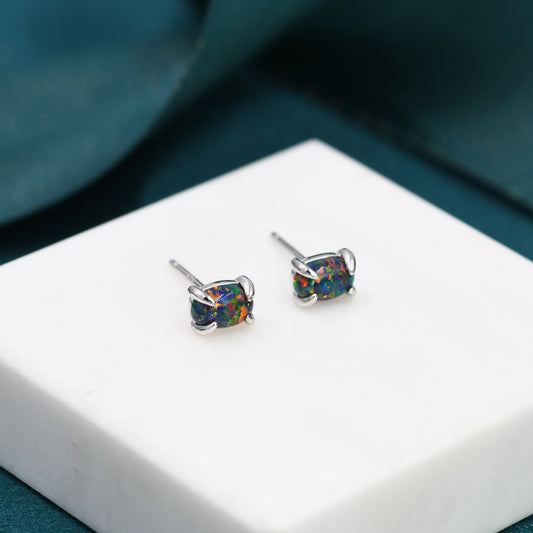 Black Opal Oval Stud Earrings in Sterling Silver - Gold or Silver - Opal Oval Earrings - Opal Prong Set Earrings, Black Opal