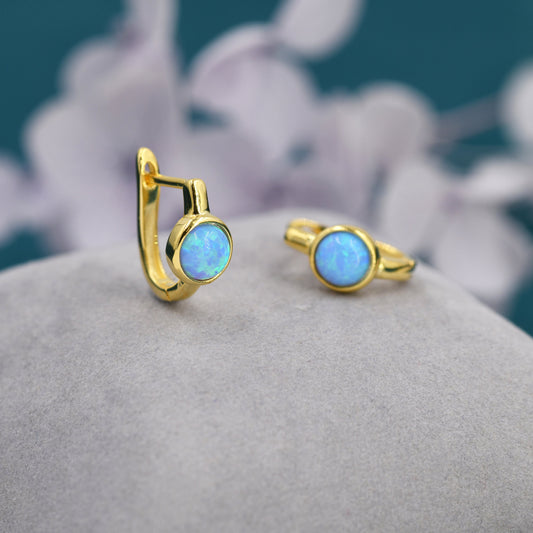 Blue Opal Huggie Hoop Earrings in Sterling Silver, Silver or Gold, 5mm Opal Lever Hoops, Opal Hoops, Simulated Opal Hoops, Fire Opal Hoops