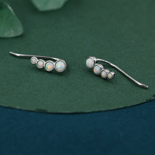 White Opal Cluster Crawler Earrings in Sterling Silver, Opal Ear Climbers, Silver or Gold, Lab Opal Earrings
