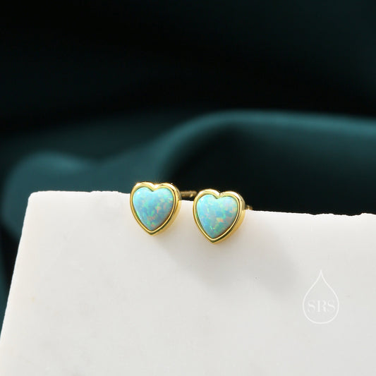 Extra Tiny Opal Heart Stud Earrings in Sterling Silver - Gold, Rose Gold and Silver Petite Stud Earrings