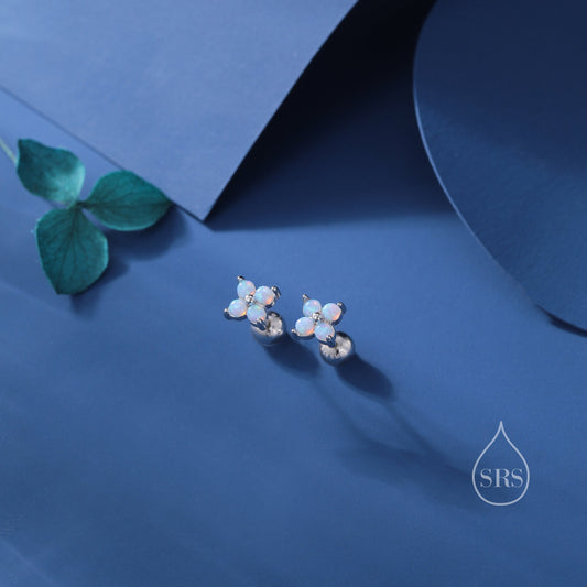 Blue Opal Hydrangea Screw Back Earrings in Sterling Silver - Gold or Silver - Opal Flower Earrings, Four Fire Opal Stud