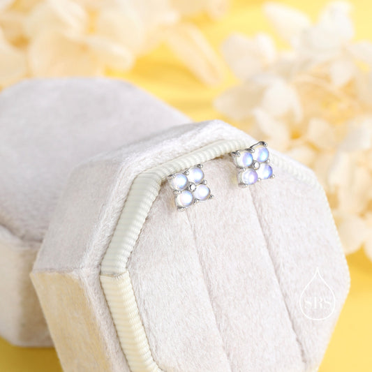 Moonstone Hydrangea Stud Earrings in Sterling Silver - Gold or Silver - Lab Moonstone Flower Earrings, Four Simulated Moonstone Stud